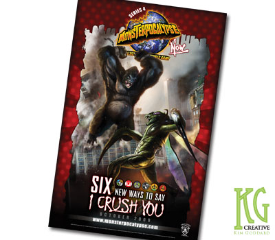 Posted on August 30, 2012April 16, 2023 by draddogetteMonsterpocalypse: Now Advertisement Poster . This 14 x 22 inch poster was an advertisement to promote Monsterpocalypse’s 4th expansion and highlight its new faction types within the game. Related